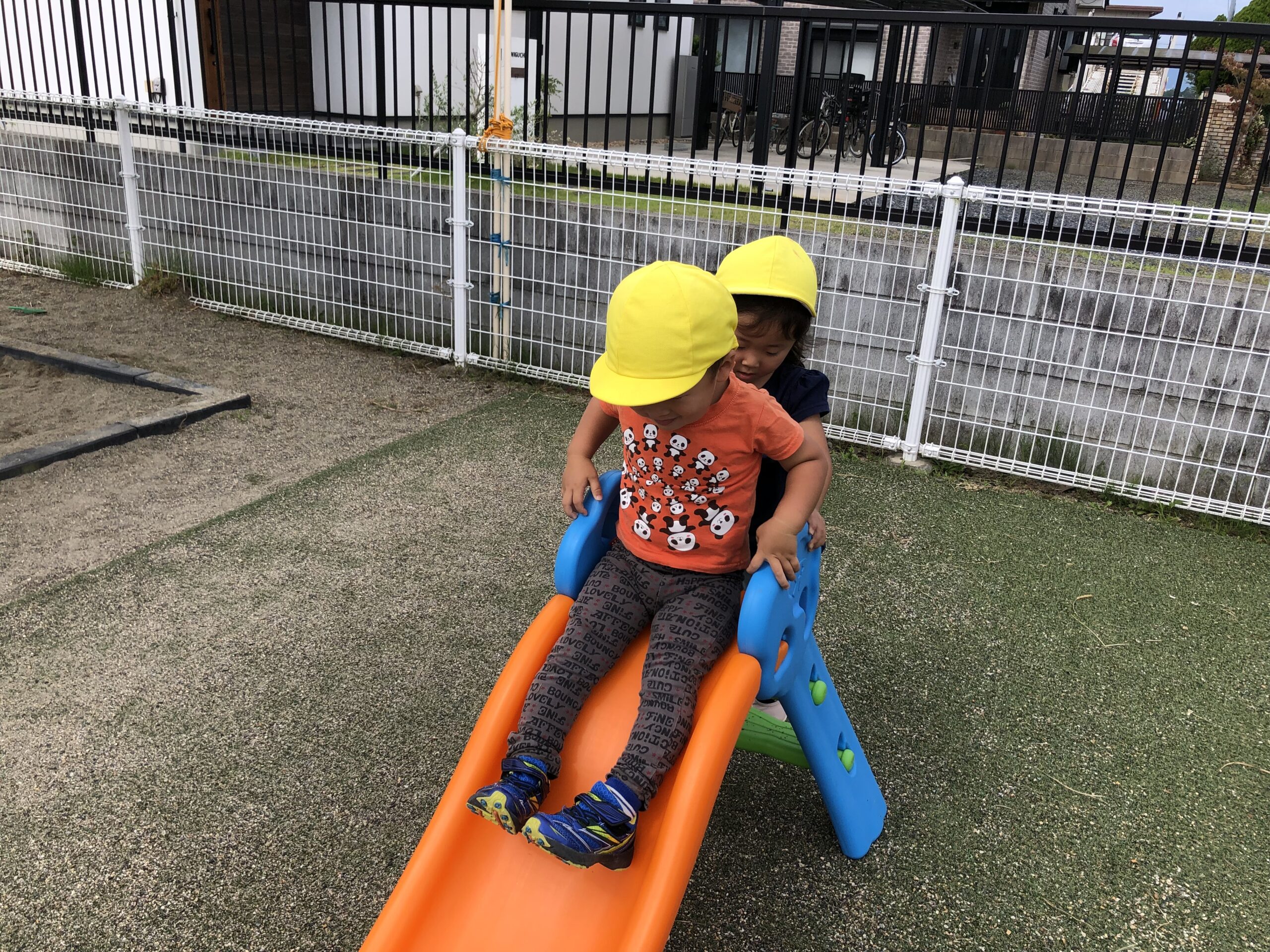 9 24 2021 秋の気持ちいい気候となってきました。 外へ出ると風が気持ち良い気候となってきました。 子どもたちは元気いっぱい園庭を走り、身体を動かしています。 今日は園庭に小さな滑り台を出しました。 繰り返し滑って楽しんだり、園庭探索したり…園庭にバッタやトンボも遊びに来てくれ子どもたちは大喜びです。 少しずつ秋の訪れを感じながら戸外遊びを楽しんでいます。