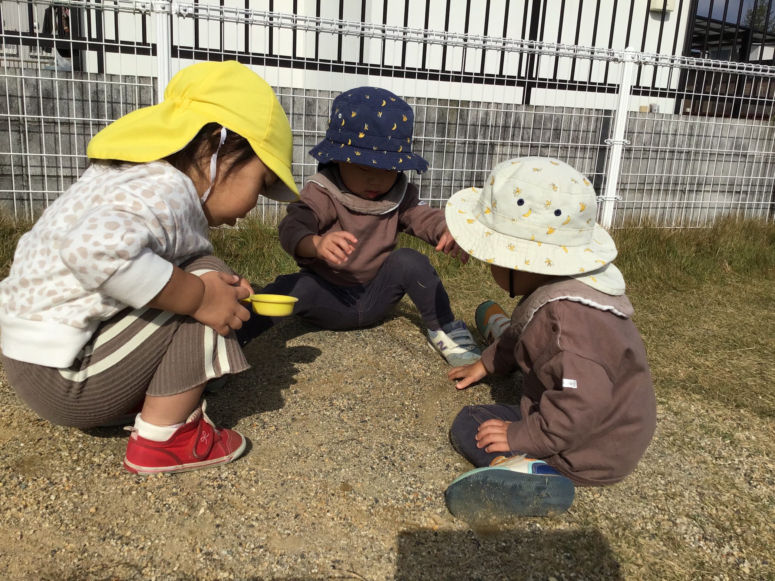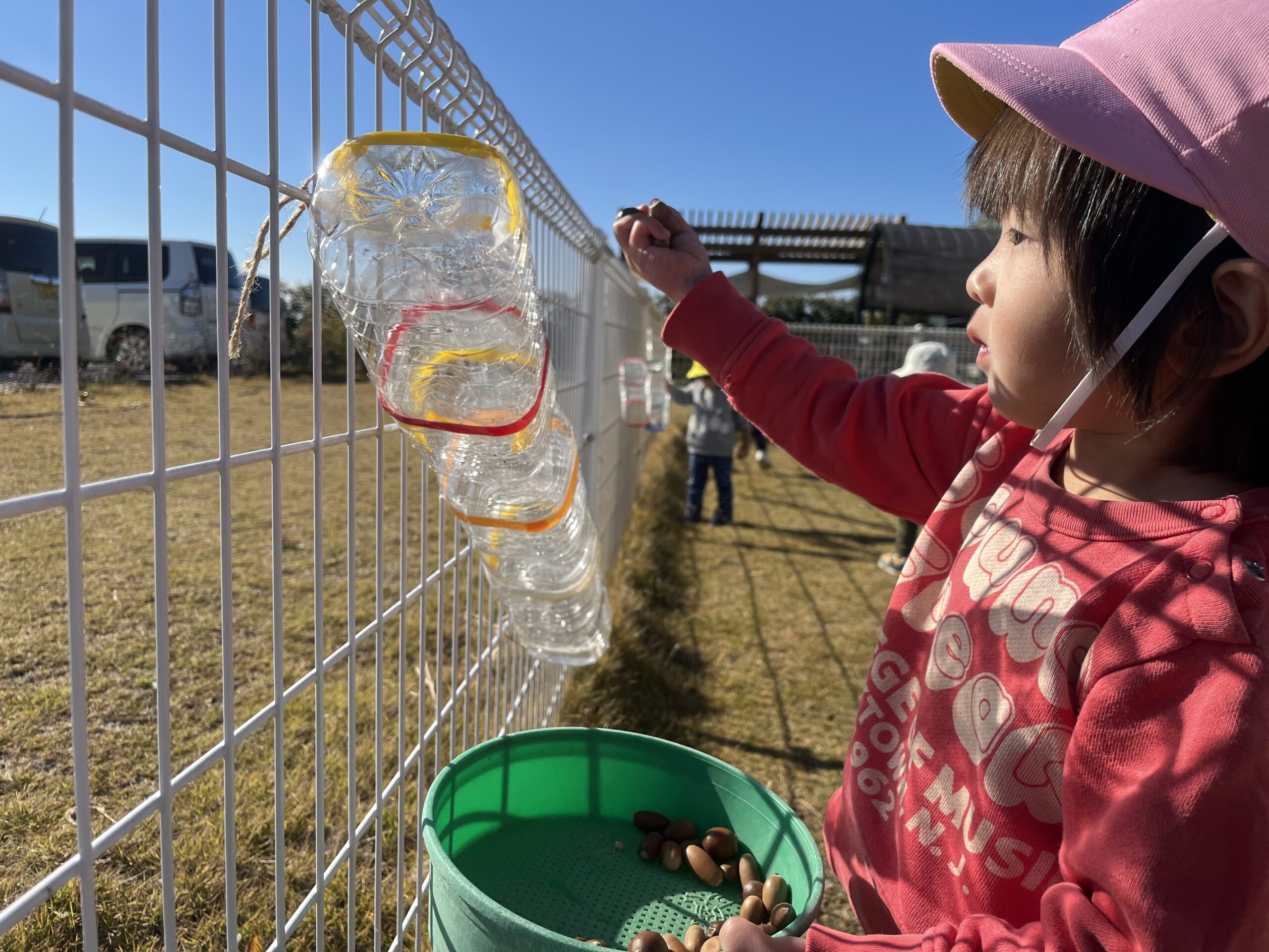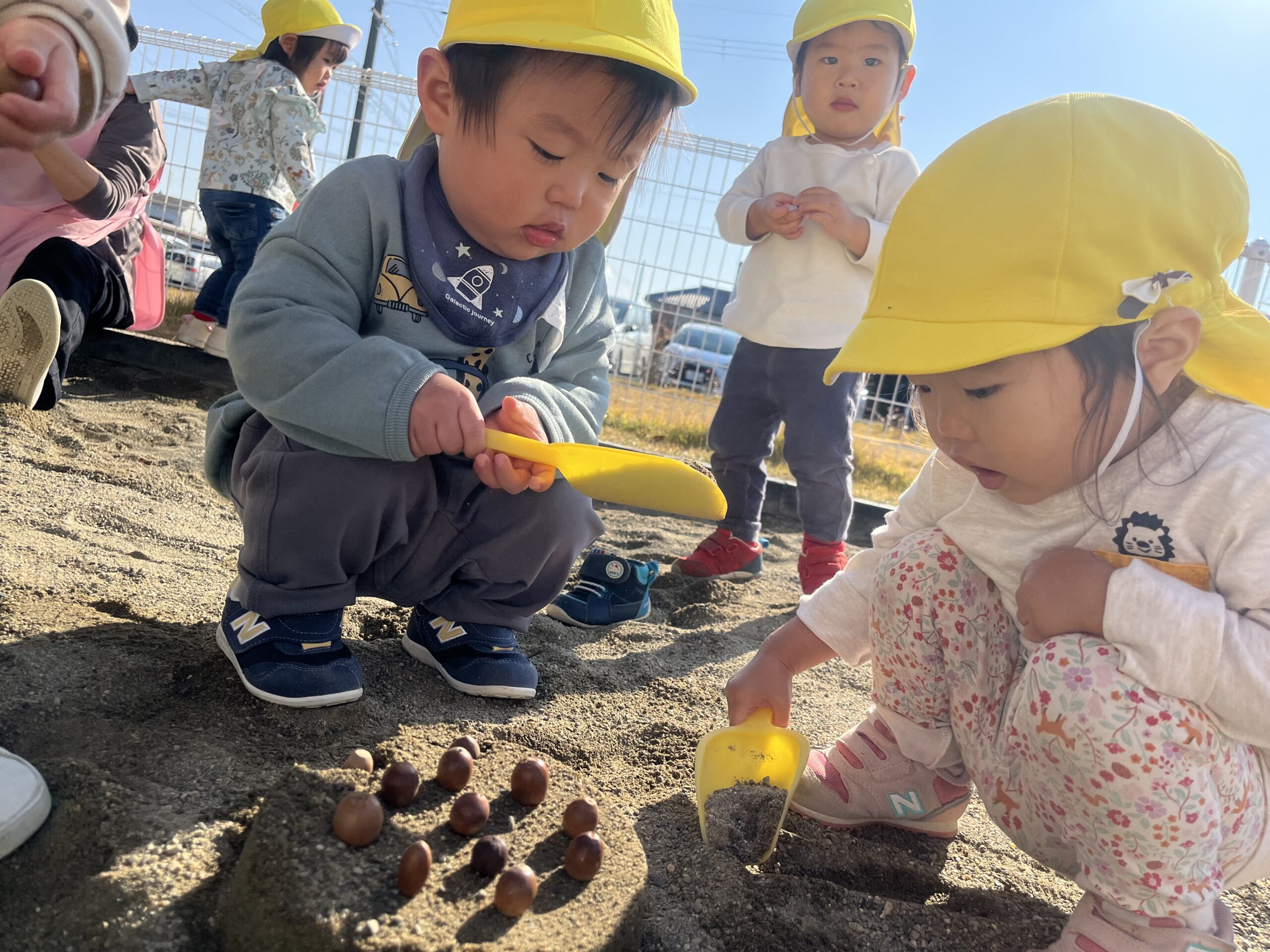 どんぐり拾いをしたり、園庭でどんぐり転がしをしたり、