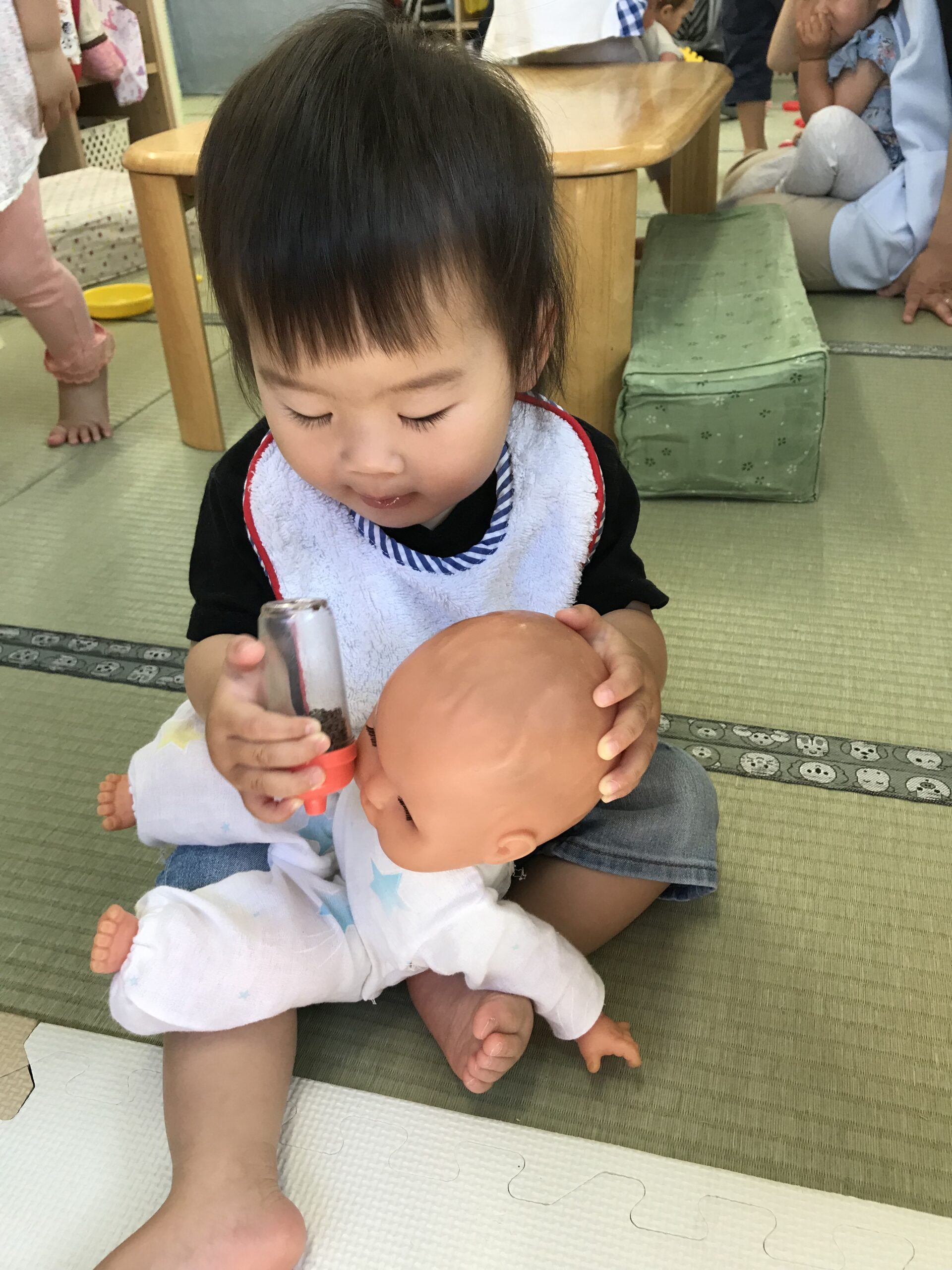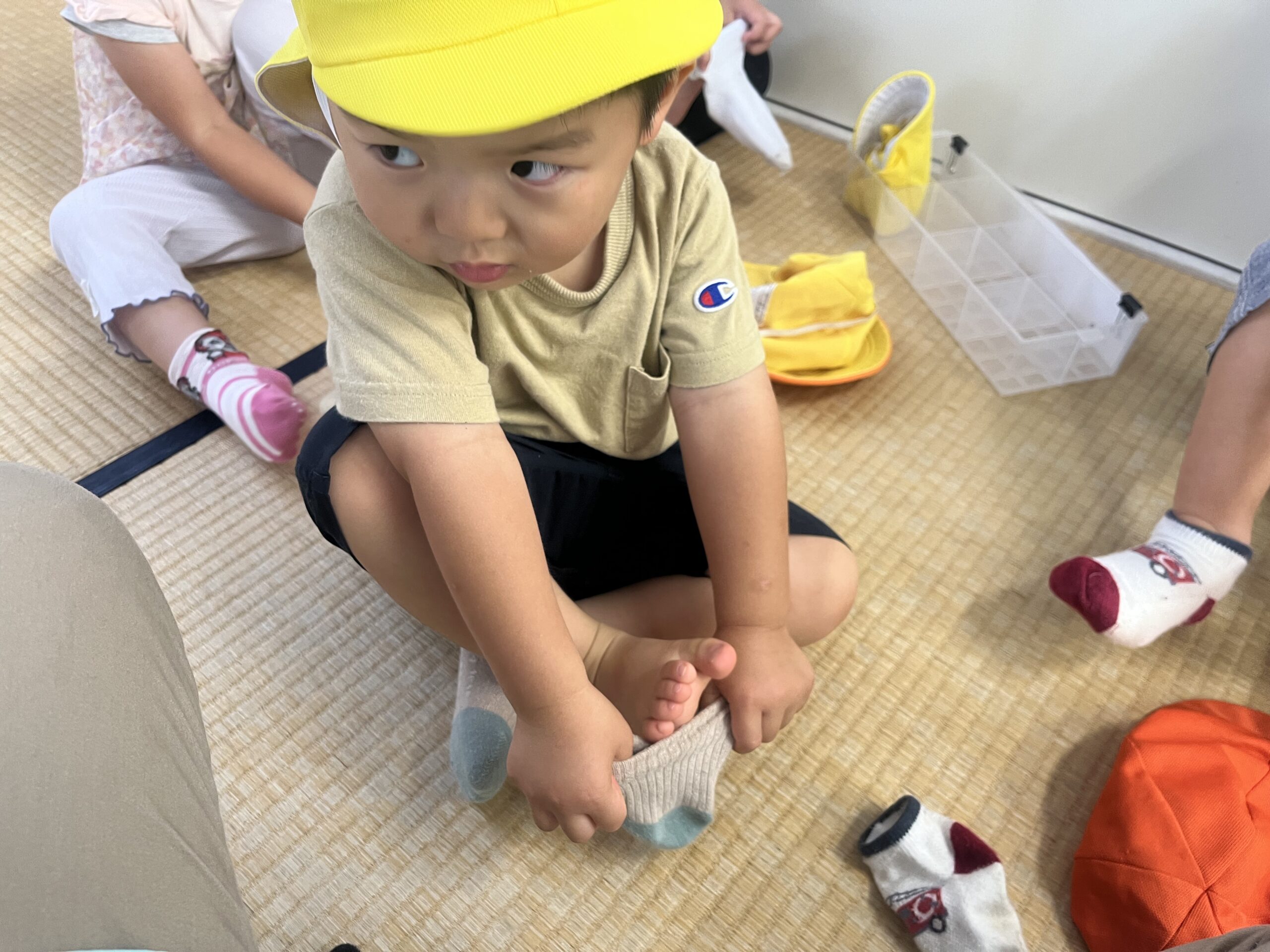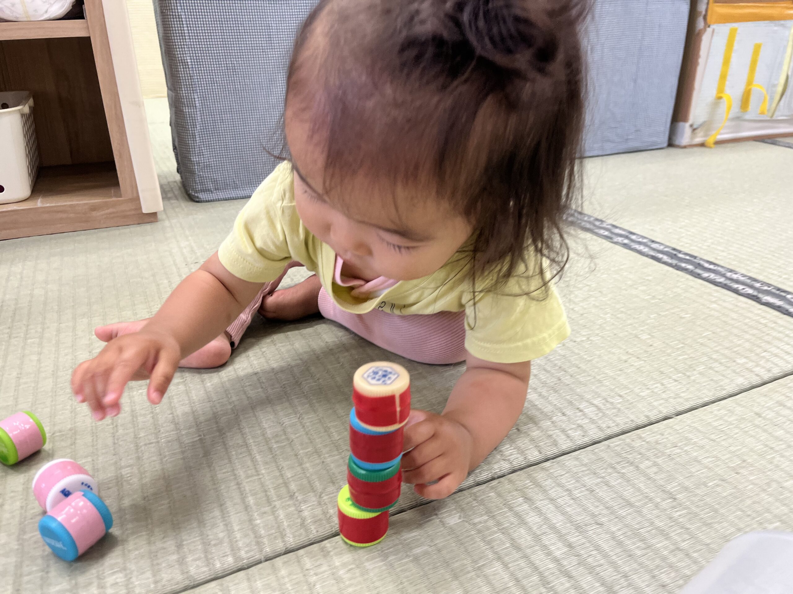 6 18 2022 6月の様子③ 日々、子どもたちの成長する姿には驚かされることばかりです。 2歳児さんは自分で靴下を履こうとしたり… 1歳児さんはペットボトルのキャップを器用に積み上げたり… 赤ちゃんのお人形にミルク飲ませてあげたり… 0歳児さんは細い穴に棒を通そうと真剣に遊ぶ姿が… 子どもたちの日々成長する姿を大切に見守っていきたいです。