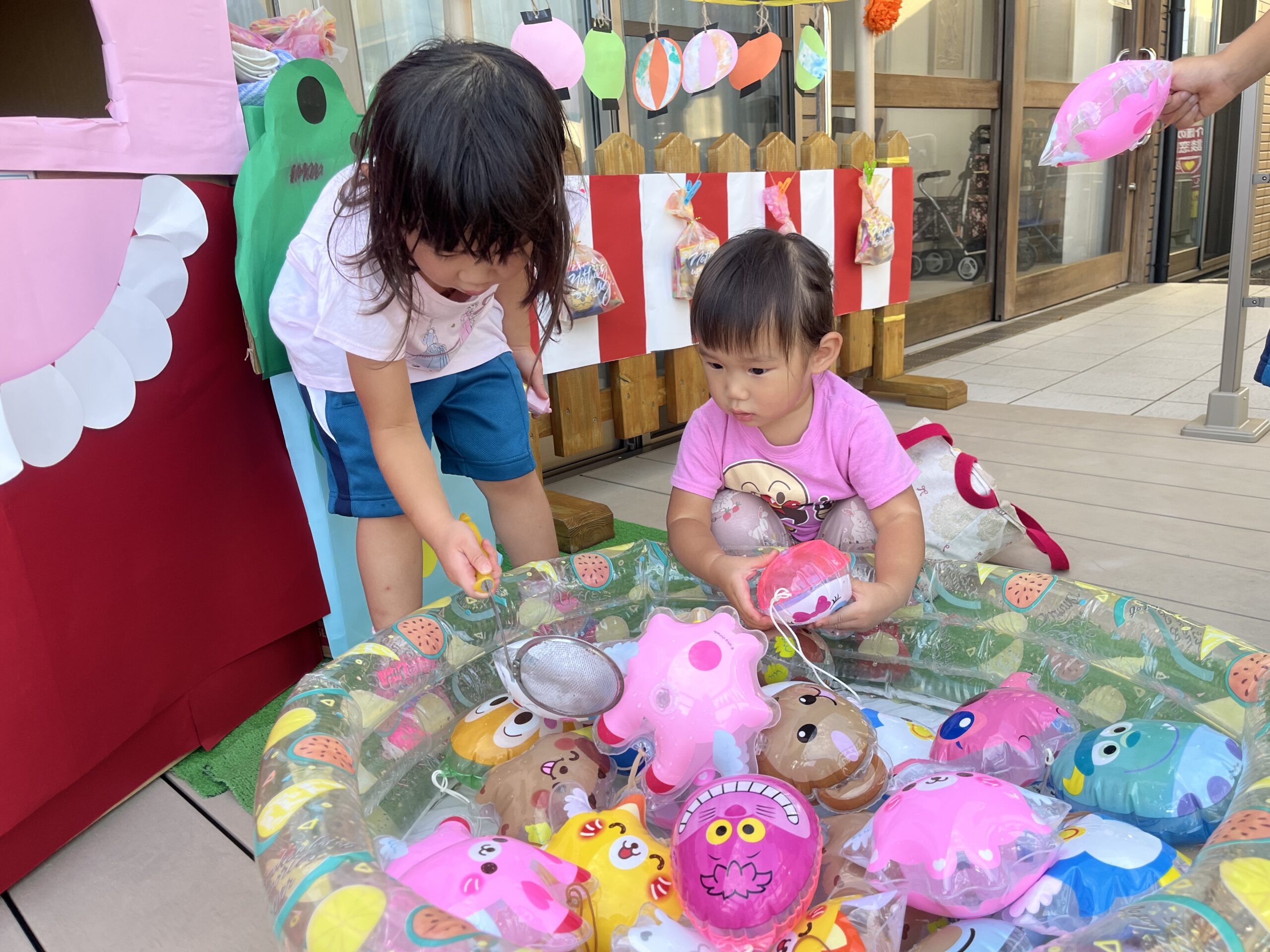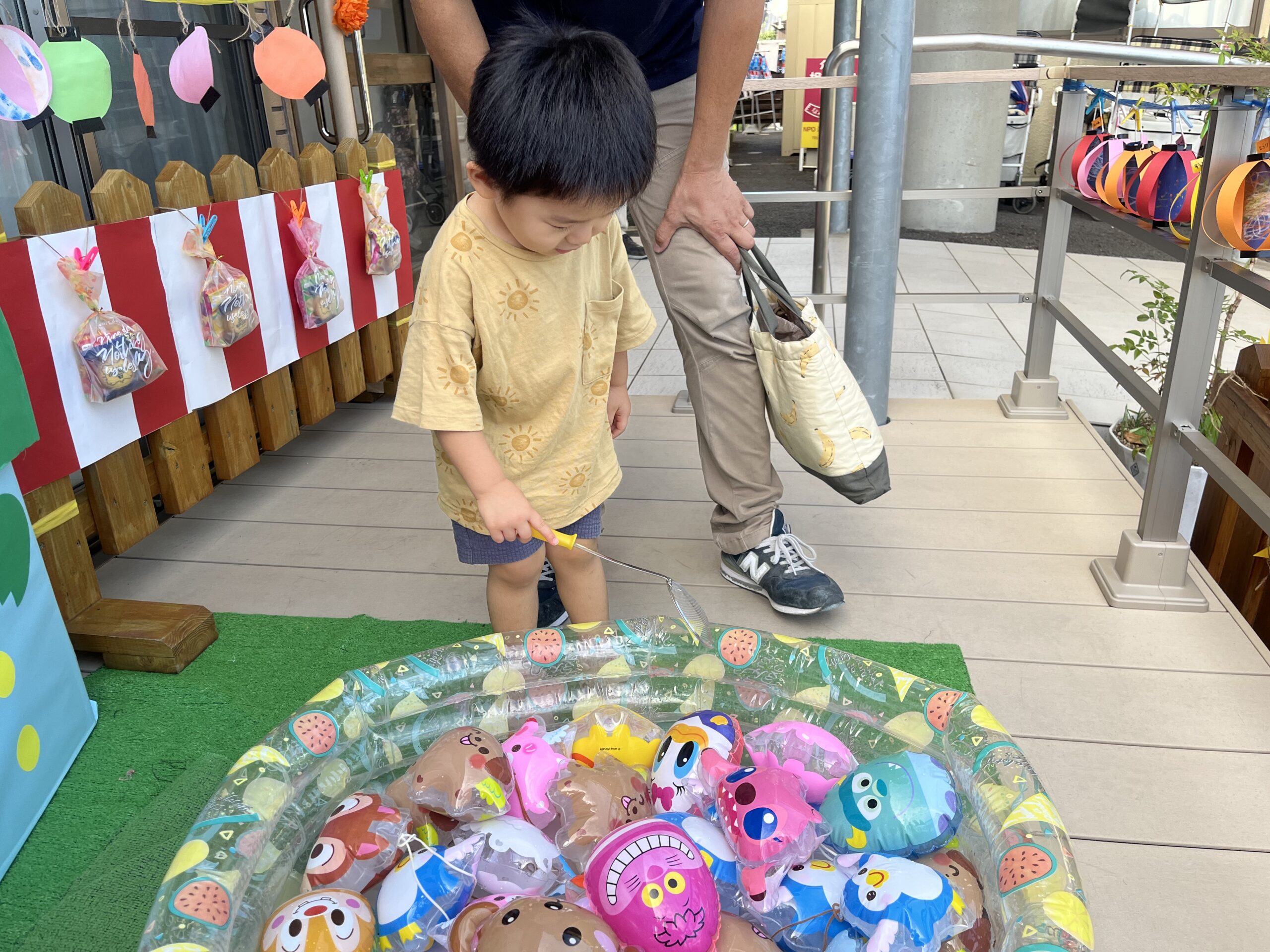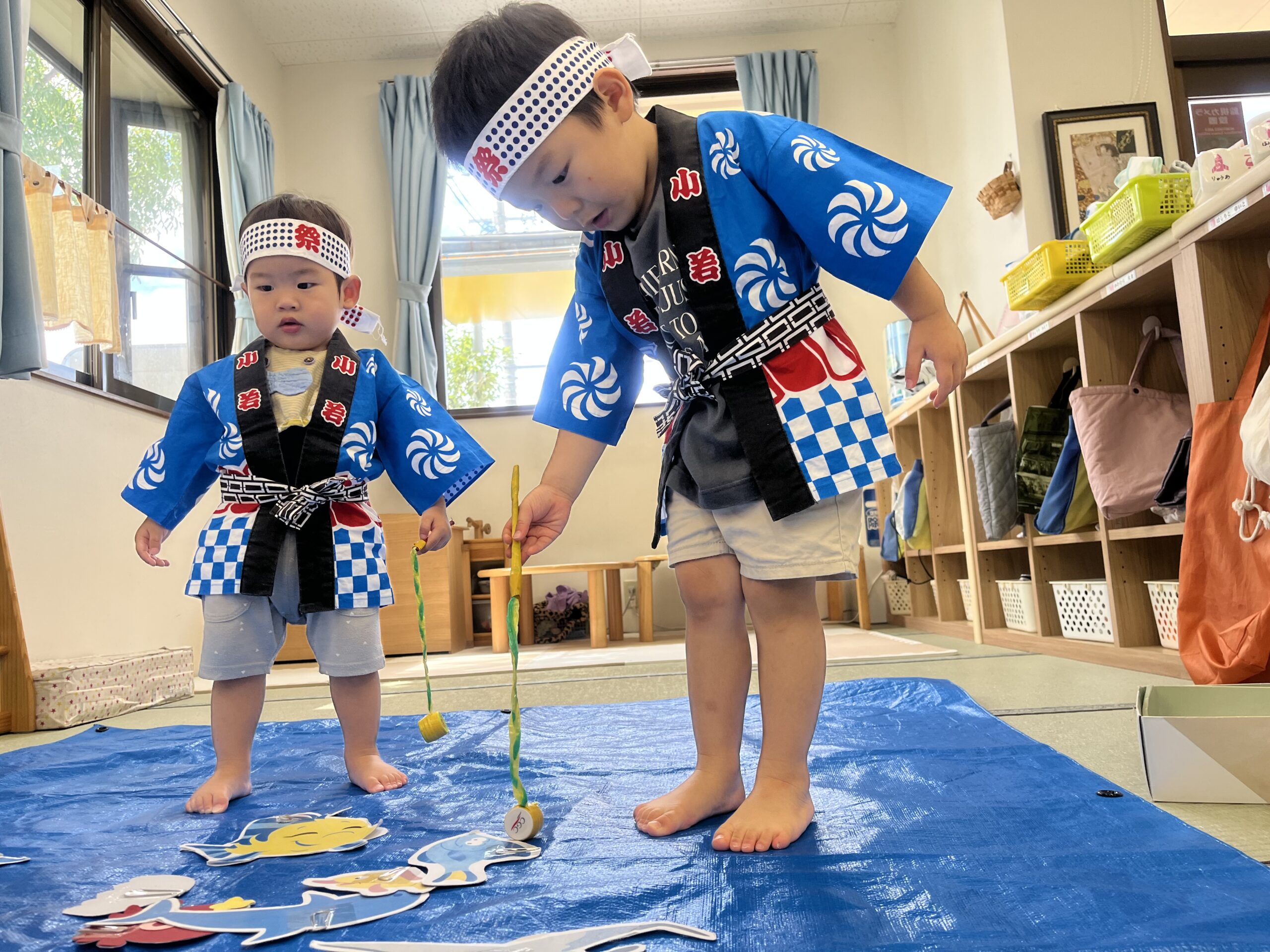 9 22 2022 夏祭り 少し遅くなってしまいましたが夏祭りを行いました。 はっぴを着て子どもたちはなんだかいつもと違う雰囲気に嬉しそうです。 盆踊りを踊ったり、魚釣り・ボール当てなど好きな遊びを選んで楽しみました。 お迎えの時には保護者の方と一緒にヨーヨー釣りです。 コロナ禍なので盛大な夏祭りができませんでしたが少しは親子でも夏祭りの雰囲気を楽しんでいただけていれば嬉しいです。